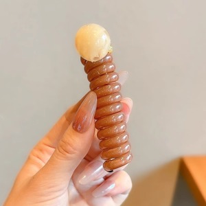 夏季扎头发发绳女2025新款直条泡泡辫电话线发圈可爱珠珠头绳发饰