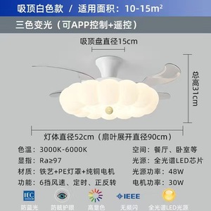 法式奶油风2025新款创意花朵儿童房间智能一体灯卧室灯隐形风扇灯