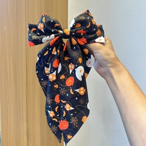 万圣节蝙蝠幽灵印花蝴蝶结发夹布艺南瓜鬼蜘蛛网图案后脑勺弹簧夹