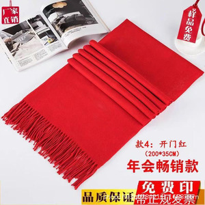 中国红围巾印字年会红围巾庆典聚会活动中国大红色围脖刺绣logo