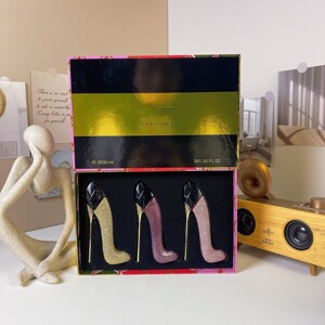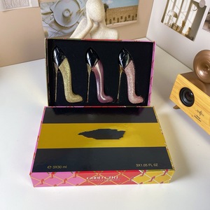 越南跨境外贸卡罗黑金盒高跟鞋香水30ml三件套琳娜紫闪高跟鞋香水