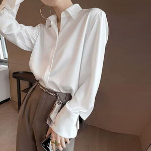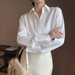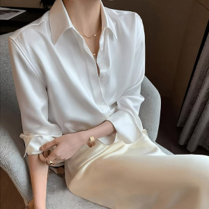 醋酸高级感女上衣2025秋季新款缎面白衬衫法式气质正装职业衬衣