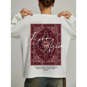 复古设计感小众趣味高级感印花2025春季中长款纯棉长袖T恤上衣潮