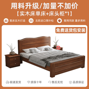 中式实木床1.8米加厚双人床经济型简约家用1.5米单人床1.2m出租房