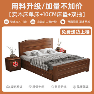 加厚胡桃色床+10cm床垫+双抽(送货入户并安装)