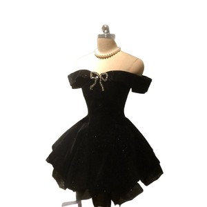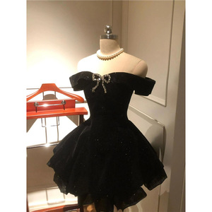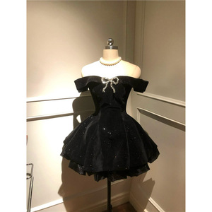 法式名媛千金高级感蝴蝶结一字肩连衣裙夏季新款时尚生日礼服裙女