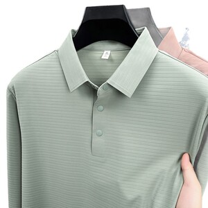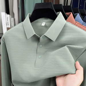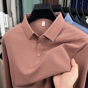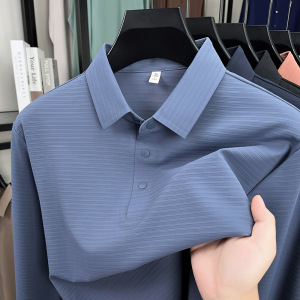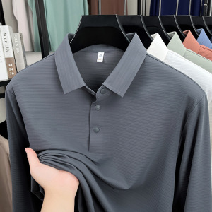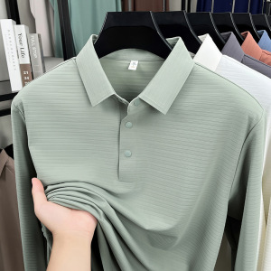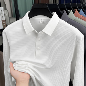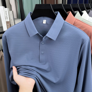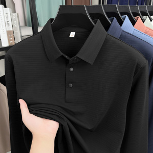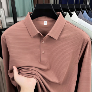 锦氨无痕中年男士长袖POLO衫弹力宽松休闲提花翻领t恤上衣打底衫