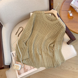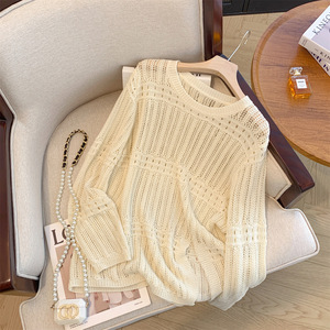 广州十三行高货爆款~薄款长袖针织防晒罩衫女设计感洋气减龄上衣