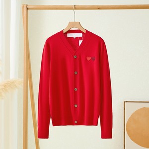 日系V领play川久男女同款双心100%羊毛针织开衫保玲长袖外套毛衣