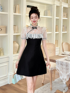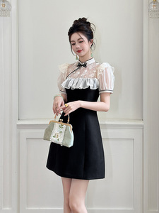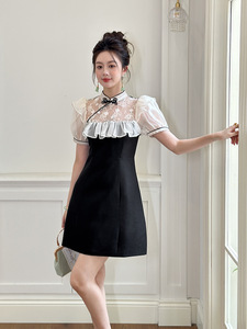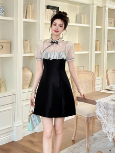 2025夏季新款女新中式改良旗袍立领设计感荷叶边收腰连衣裙15441