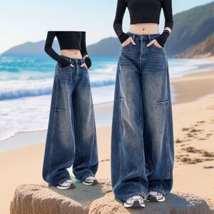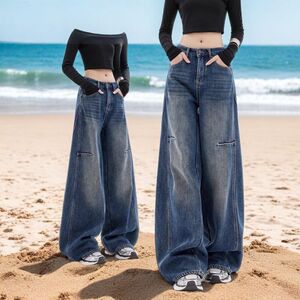 高个子加长复古阔腿美式弯刀牛仔裤2025新款宽松春季显瘦拖地裤