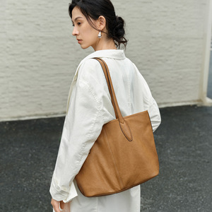 裘真植鞣羊皮漫漫托特包女大容量通勤包真皮休闲单肩包2025年新款