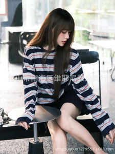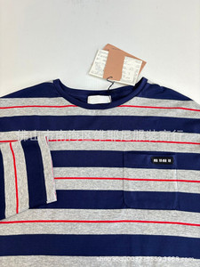高品质 M1U家口袋字母贴布条纹长袖衫日系清新百搭运动打底T恤潮