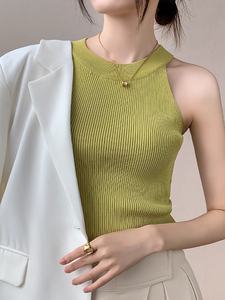 挂脖针织吊带背心女2025春夏新款修身显瘦衬衫内搭设计感别致上衣