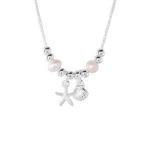 蒂奇S925纯银天然珍珠海星贝壳项链女简约温柔切面水晶气质锁骨链