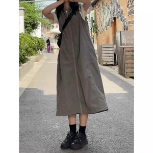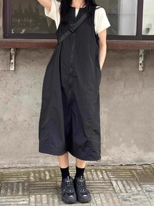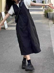山系黑色工装背心裙女夏季新款连衣裙大码裙子胖mm宽松显瘦背带裙