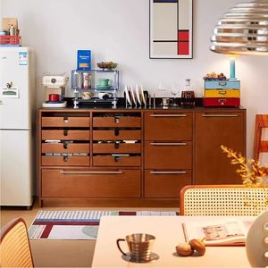 实木餐边柜小户型餐厅茶水柜北欧复古置物柜现代简约储物酒柜