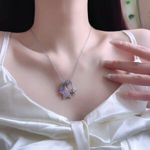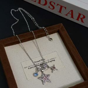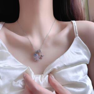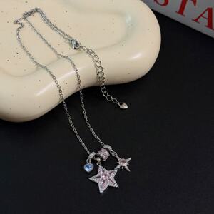 超闪微镶粉色锆石五角星幸运芒星项链女时尚精致轻奢百搭锁骨链潮