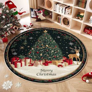 圣诞节地毯节日氛围感圆形水晶绒卧室卫生间地垫底部防滑客厅地毯