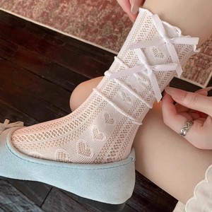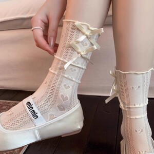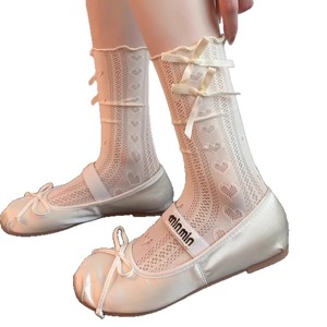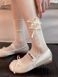 蕾丝袜子女蝴蝶结日系镂空网眼透气夏季薄款堆堆袜miu系配玛丽珍