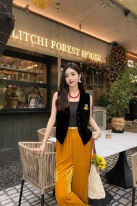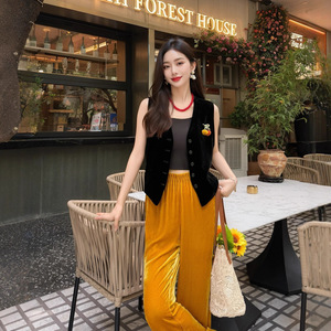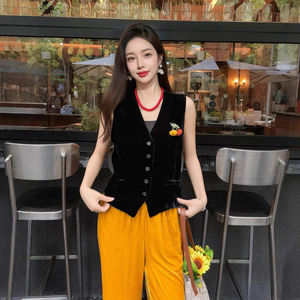 25秋款真丝丝绒拼接马甲V领设计精致显瘦休闲百搭坎肩上衣不退换