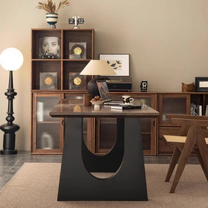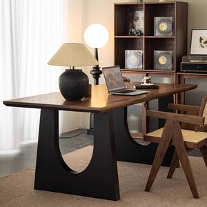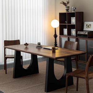 北美黑胡桃木色中古餐桌长方形去客厅化大长工作台大板餐书桌一体