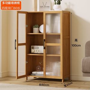 书架落地置物架家用实木书柜带门防尘透明玻璃门一体靠墙储物柜子