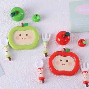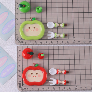 健康苹果大餐仿真食玩摆件diy钥匙扣挂件树脂配件 苹果餐盘叉勺