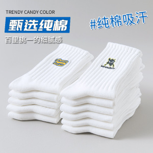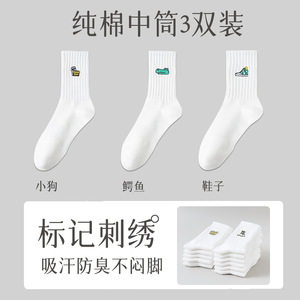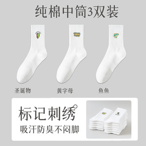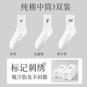袜子男青少年新疆棉防臭中筒袜春秋季高中生潮流白色运动纯棉男袜