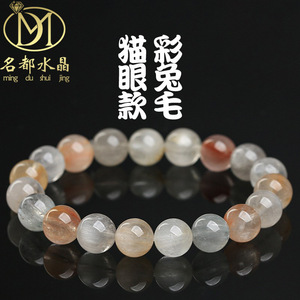 名品都水晶 天然猫眼彩兔毛发晶手链 多彩兔毛手串 时尚男女 批发