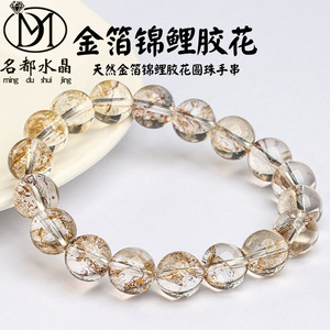 名品都水晶 天然金箔锦鲤胶花手链 锦鲤胶花圆珠手串批发