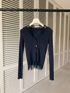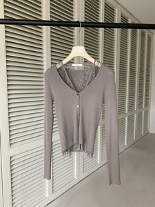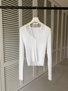 趋梦DT ETOLIE穿搭心机蕾丝打底v领针织开衫女秋季修身上衣两件套