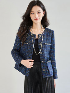 25秋装璀璨星蓝重工亮片编织粗花呢髙奢名媛风小香风外套25107