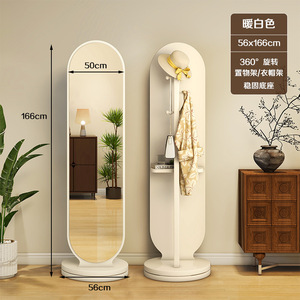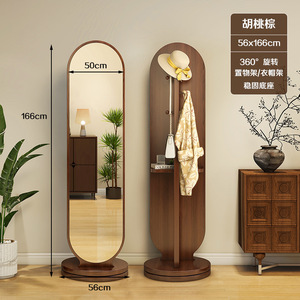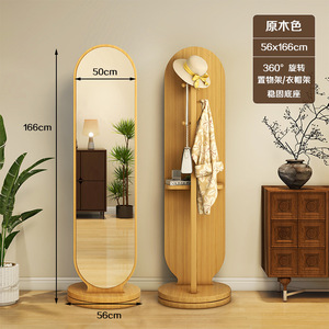 全身镜穿衣镜挂衣架简约落地镜家用试衣镜衣帽架一体木质旋转镜子