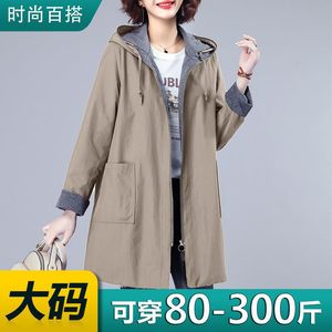 大码风衣中长款宽松300斤上衣休闲有潮女胖内衬妈妈外套春秋连帽