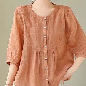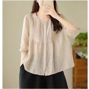 大码女装棉麻上衣女胖mm夏季新款遮肚子高端妈妈夏季上衣宽松杏色