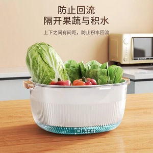 双层洗菜盆沥水篮厨房家用客厅茶几塑料水果果盘篮子盆子淘菜盆篮