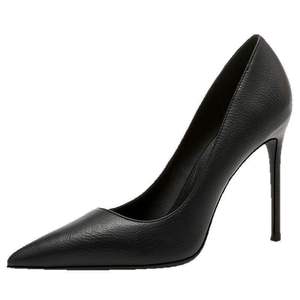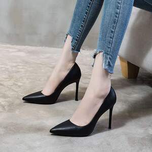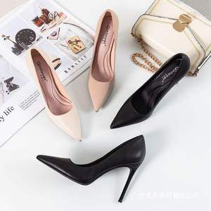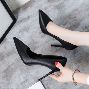 高品质春夏新款真软皮工作鞋软底空气垫职业单鞋尖头黑色高跟鞋女