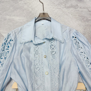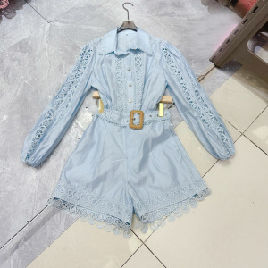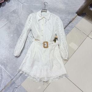 南油欧美澳洲小众白色套蕾丝拼接衬衫上衣配腰带短裤套装