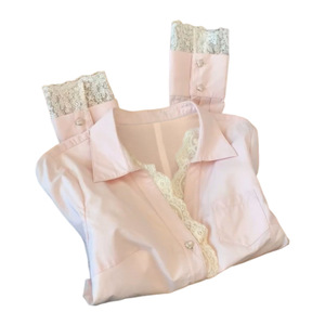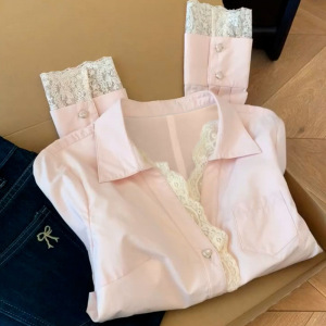 粉色蕾丝衬衫女春秋季2025新款法式气质收腰衬衣漂亮小衫长袖上衣