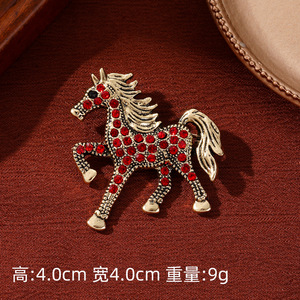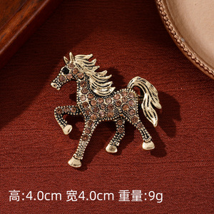 跨境生肖马胸针复古高级感本命年动物胸花配饰男女西服别针防走光