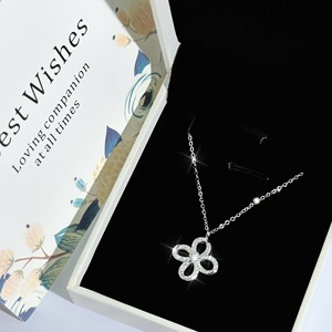 原创S925纯银镂空四叶草项链女夏季百搭气质新款轻奢时尚花朵银饰