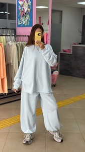 跨境批发韩国纯色外套秋季松弛垂感宽松韩版潮牌抽绳运动长裤套装