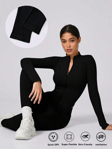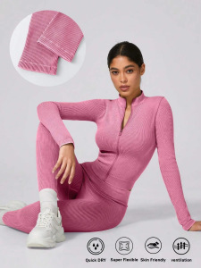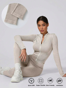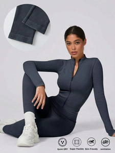 欧美速干健身运动瑜伽服套装女拉链长袖健身服上衣收腹高腰瑜伽裤