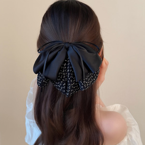 新款布艺碎花丝带蝴蝶结马尾抓夹后脑勺夹子头饰气质半扎发夹发饰