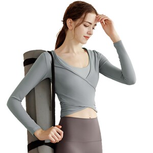 瑜伽服上衣女修身显瘦长袖套装T恤跑步运动上衣普拉提训练健身服