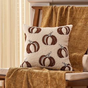 temu跨境1pc秋天南瓜抱枕套,泰迪绒兔毛靠垫感恩节万圣节装饰客