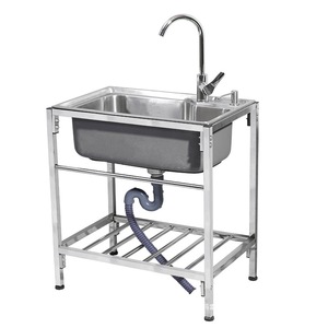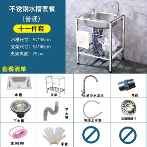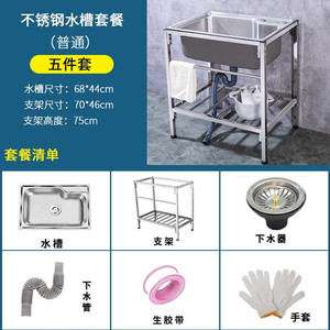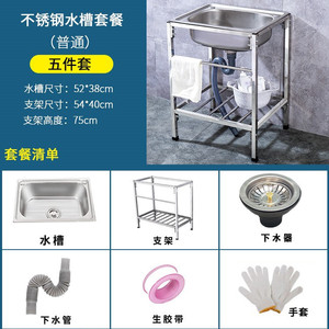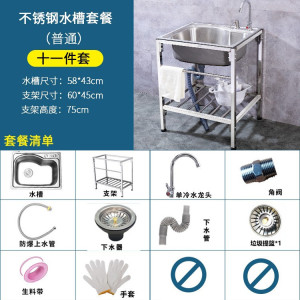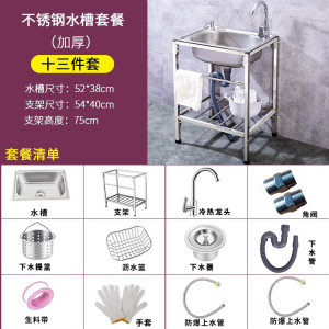 厨房J加厚简易304不锈钢水槽大单槽双槽带支架洗菜盆洗碗池洗