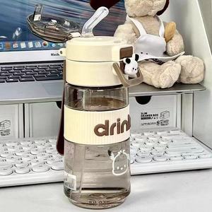夏日水杯学生吸管便携大容量塑料防摔女生高颜值上学专用儿童简约