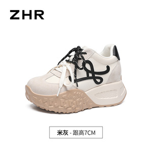 ZHR则则7CM内增高阿甘鞋女鞋真皮老爹鞋2025新款双鞋带轻便休闲鞋